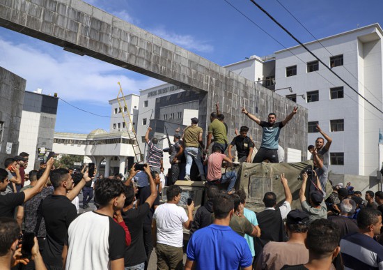 ↑10月7日,在加沙城,巴勒斯坦人登上一輛以色列軍(jun) 用車輛。新華社發(裏澤克·阿卜杜勒賈瓦德攝)