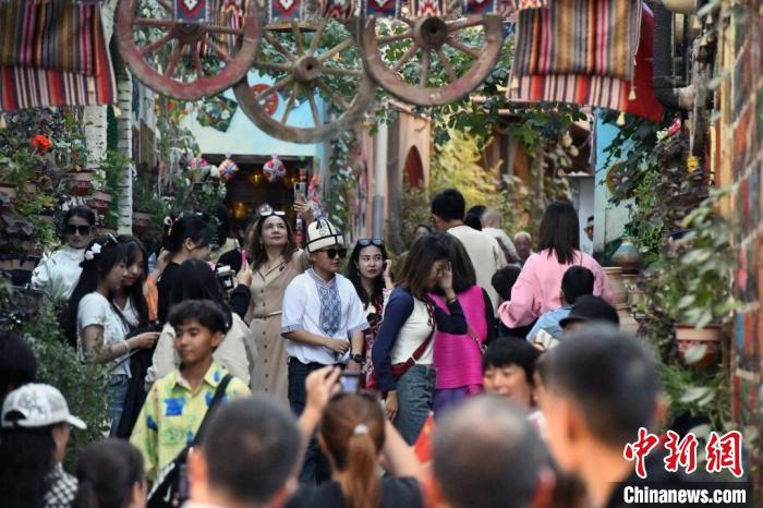 正值中秋國慶假期,位於(yu) 中國西部的新疆喀什古城景區迎來旅遊高峰,成為(wei) 眾(zhong) 多遊客的出行目的地。圖為(wei) 10月1日,喀什古城景區裏絡繹不絕的遊客。 中新網記者 孫亭文 攝