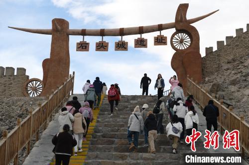 圖為(wei) 10月2日拍攝的位於(yu) 帕米爾高原上的塔什庫爾幹縣石頭城遺址參觀的遊客。 中新網記者 孫亭文 攝