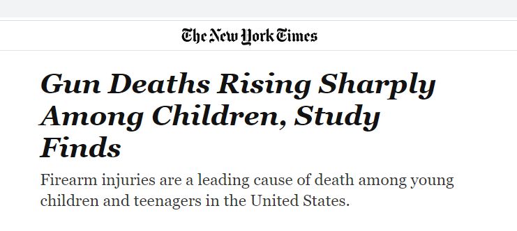 文章指出,考慮到其在美國兒(er) 童中的高致死率,公共衛生立法在支持控槍方麵的滯後令人擔憂。