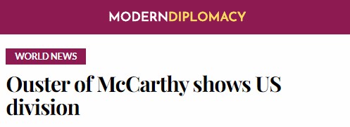 歐洲《現代外交》網站在6日的報道指出,凱文·麥卡錫(Kevin McCarthy)的美國國會(hui) 眾(zhong) 議院議長職位於(yu) 本月3日被罷免,成為(wei) 自1875年以來任期最短的議長。據相關(guan) 消息,在麥卡錫與(yu) 民主黨(dang) 人合作通過短期撥款法案以避免美國政府停擺後,少數極右翼共和黨(dang) 人與(yu) 民主黨(dang) 人一道罷免了這位加利福尼亞(ya) 州共和黨(dang) 人。