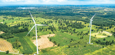 圖為(wei) 猜也蓬電廠的風機(無人機拍攝於(yu) 10月5日)。