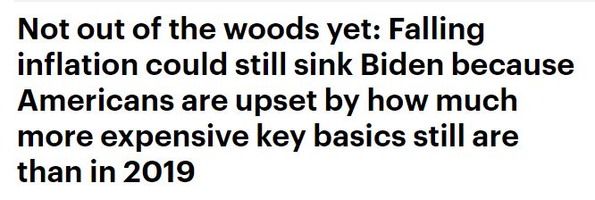 報道援引美國數字新聞網站(Axioses)的民調稱,美國民眾(zhong) 對本國經濟的看法十分糟糕。這其中很重要的原因就是,民眾(zhong) 在日常生活中更關(guan) 注所需商品的絕對價(jia) 格,而這一價(jia) 格目前依然過高。盡管近期美國通脹率有所下降,但商品價(jia) 格還在上漲,隻是比以前稍慢了一些。