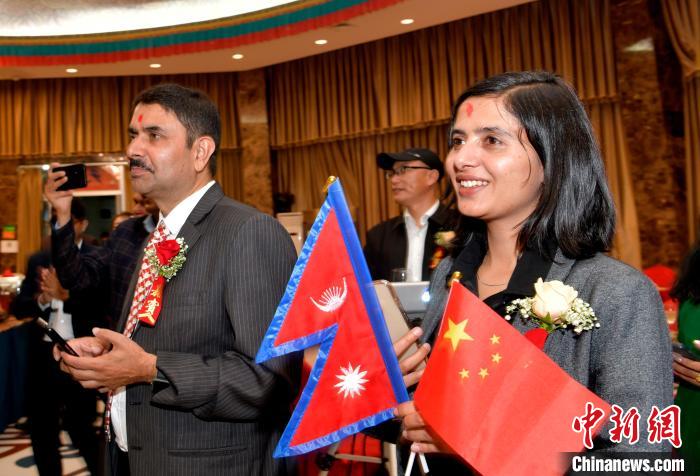 圖為(wei) 10月7日,尼方人員手舉(ju) 兩(liang) 國國旗,載歌載舞。李林 攝
