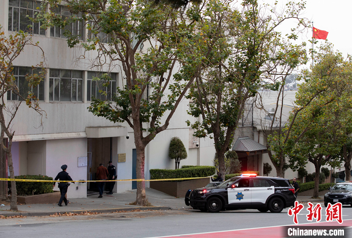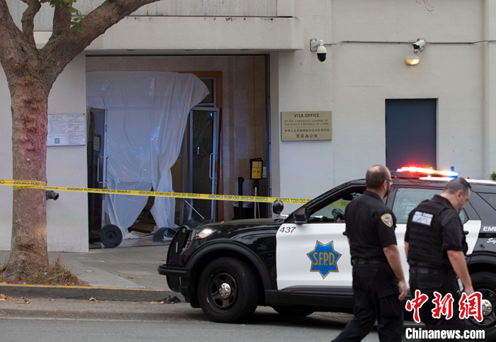 當地時間10月9日,美國舊金山警方在中國駐舊金山總領館附近對總領館館舍遭衝(chong) 闖襲擊事件展開調查。中國駐舊金山總領館發言人表示,9日下午,有不明身份人員駕車暴力衝(chong) 撞闖入中國駐舊金山總領館證件大廳,對工作人員及現場民眾(zhong) 生命安全構成嚴(yan) 重威脅,對總領館設施與(yu) 財產(chan) 造成嚴(yan) 重破壞,性質極其惡劣。 中新社記者 劉關(guan) 關(guan) 攝