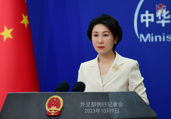 中新網北京10月9日電 (記者 李京澤)中國外交部發言人毛寧9日主持例行記者會(hui) 。有記者就巴以衝(chong) 突和美國向以色列運送軍(jun) 事設備提問。