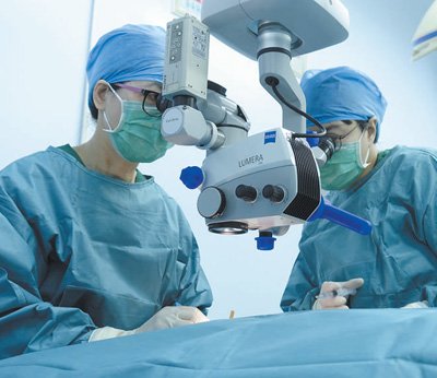 9月16日,北京大學人民醫院“健康快車國際光明行”醫療隊醫生鮑永珍(左)和孟慶娛正在為(wei) 吉爾吉斯斯坦患者實施白內(nei) 障複明手術。