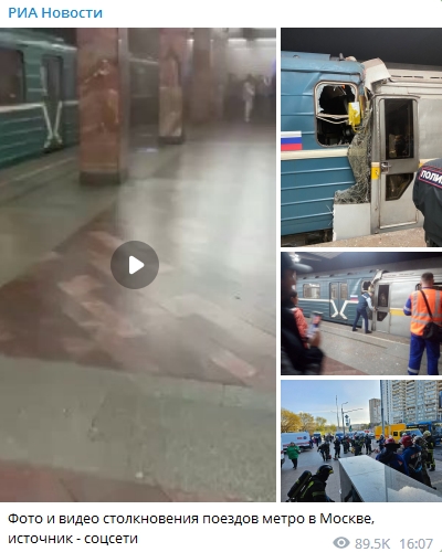 莫斯科市長索比亞(ya) 寧在社交媒體(ti) 上稱,事故導致一名列車司機受傷(shang) ,正在為(wei) 其提供醫療救助;沒有乘客重傷(shang) 。