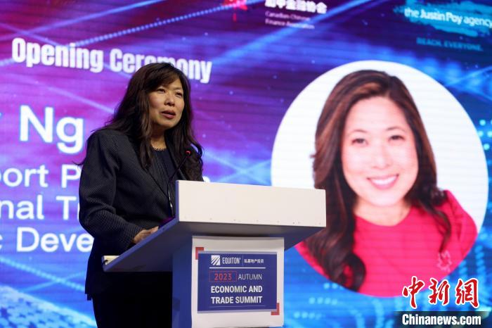 當地時間10月11日,加拿大多倫(lun) 多,加拿大出口促進、國際貿易和經濟發展部長伍鳳儀(yi) 在多倫(lun) 多出席當日開幕的2023秋季經貿論壇時表示,加政府正繼續在全球各地商談、拓展貿易協議。記者 餘(yu) 瑞冬 攝