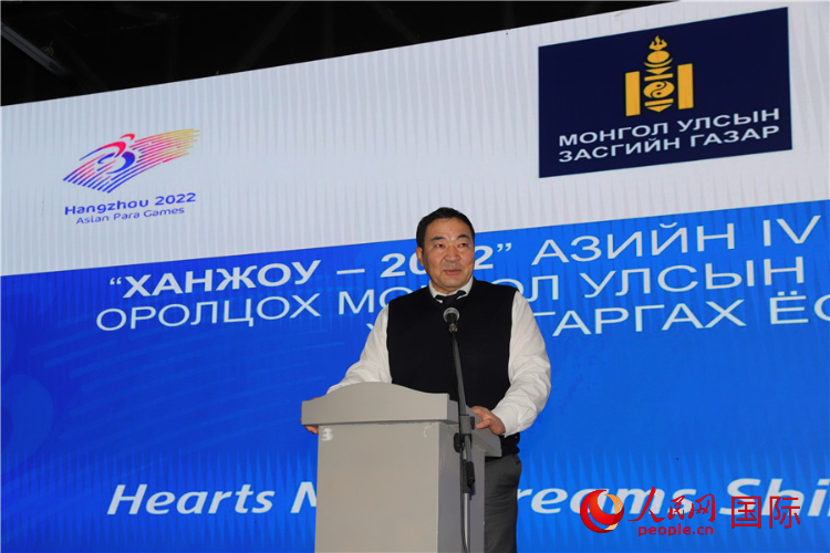 儀(yi) 式上首先播放了杭州第4屆亞(ya) 殘運會(hui) 宣傳(chuan) 片,宣讀了亞(ya) 殘奧委會(hui) 主席馬吉德的賀辭。巴特額爾登在致辭中感謝蒙古國運動員和教練員的辛勤付出,預祝參賽運動員取得好成績。尼瑪呼在致辭中希望代表團成員團結一致,賽出風格,賽出水平,樹立蒙古國運動員的良好形象,同時力爭(zheng) 獲得更多獎牌,為(wei) 國增光。