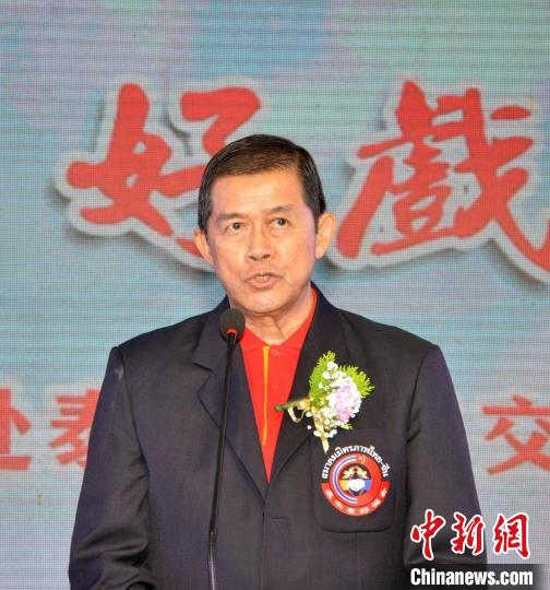 泰國前副總理、泰中友好協會(hui) 會(hui) 長功·塔帕朗西在晚會(hui) 開幕式上致辭。李映民 攝