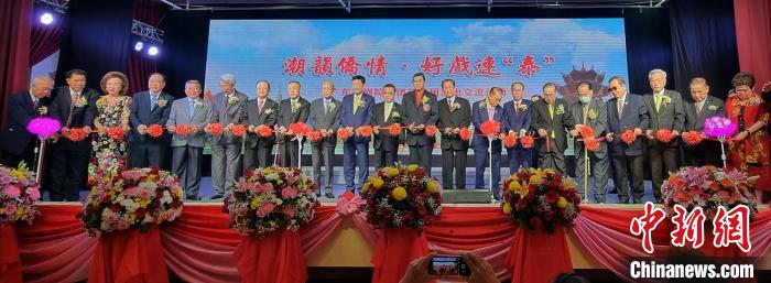 為(wei) 隆重慶祝泰中建交48周年,泰國文化部、泰國潮劇公會(hui) 聯合舉(ju) 辦"鄉(xiang) 音連僑(qiao) 心"潮劇晚會(hui) ,13日晚潮劇會(hui) 開幕和首演,圖為(wei) 與(yu) 會(hui) 嘉賓為(wei) 晚會(hui) 開幕剪彩。鄭友宜 攝