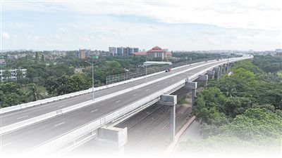 由中國山東(dong) 高速集團主導投資建設運營的孟加拉國首條高架快速路——達卡機場高架快速路項目(一期)通車儀(yi) 式9月2日在孟加拉國首都達卡舉(ju) 行。項目通車後極大改善了達卡市區交通狀況。圖為(wei) 孟加拉國達卡機場高架快速路項目(一期)遠景。本報記者 孫廣勇攝