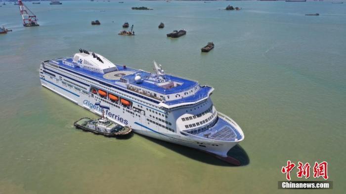 2021年7月15日,中國為(wei) 阿爾及利亞(ya) 建造的首艘豪華客滾船啟航。中新社發 符致冠 攝