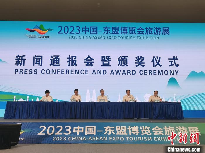 10月15日,2023中國—東(dong) 盟博覽會(hui) 旅遊展新聞通報會(hui) 暨頒獎儀(yi) 式舉(ju) 行。唐蔚晴 攝
