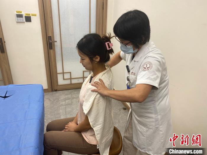 接下來許麗(li) 用手微微握拳,在記者左邊肩頸處反複做著“來回滾動”的動作。“這叫‘?法’,可以充分放鬆肌肉,它是一種柔和有力、剛柔並濟的中醫推拿代表性手法。”許麗(li) 說,記者群體(ti) 中,肩頸疼痛是最普遍的問題。“高強度的工作會(hui) 讓記者常感到頭暈、肩背酸脹,這時需要一定的肌肉放鬆才能消除不適感。”