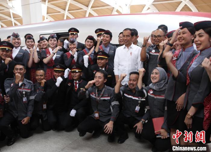 9月13日,印度尼西亞(ya) 總統佐科考察中印尼合作項目雅萬(wan) 高鐵,並在哈利姆站乘坐G5901次高鐵列車赴帕達拉朗站。這是他首次乘坐雅萬(wan) 高鐵。圖為(wei) 佐科在哈利姆站與(yu) 乘務人員合影。 中新社記者 李誌全 攝