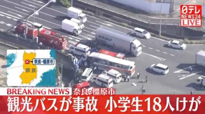 據報道,事發時車內(nei) 共有34名小學生,另外還有3名教師,一行人原本是計劃前往奈良公園參加遠足活動,但在橿原市一個(ge) 路口發生車禍。