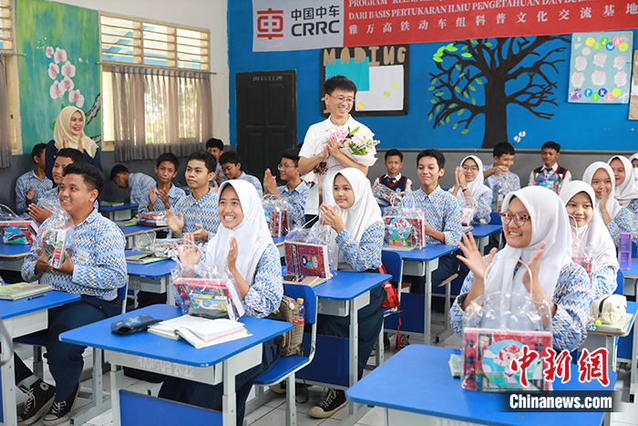 “同學們(men) ,雅萬(wan) 高鐵列車為(wei) 什麽(me) 能跑這麽(me) 快?雅萬(wan) 高鐵上有哪些印尼元素?”24日,在印度尼西亞(ya) 萬(wan) 隆岸普拉第三國立初級中學一間教室內(nei) ,一堂別開生麵的高鐵科普課正在進行中。這是中國高鐵公益課堂首次走進印尼校園。