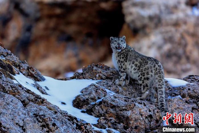 資料圖為(wei) 2017年,攝影師在祁連山國家公園青海片區拍攝到的雪豹。(鮑永清 攝)