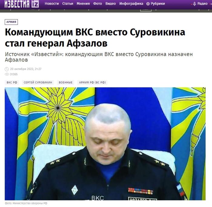 俄新社在其履曆中寫(xie) 到,2023年8月,阿夫紮洛夫再次被任命為(wei) 俄空天軍(jun) 代理總司令,2023年10月20日,被任命為(wei) 俄空天軍(jun) 總司令。