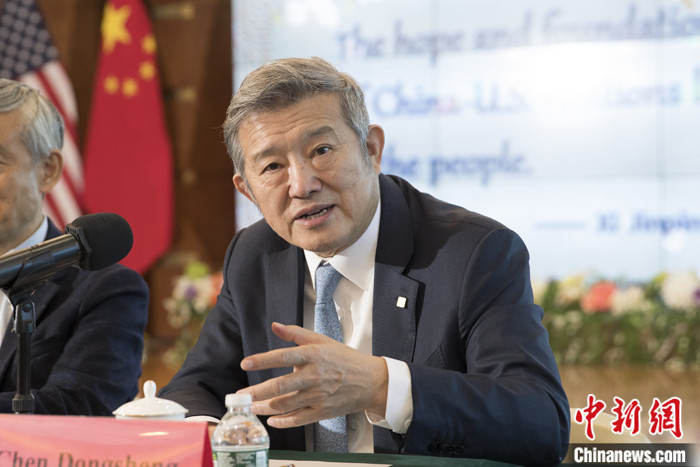 當地時間10月25日,參加清華大學和美中關(guan) 係全國委員會(hui) 共同舉(ju) 辦的“中美民眾(zhong) 對話”活動的部分代表來到中國駐紐約總領事館,就中美經貿關(guan) 係、科研合作、人文交流等回答記者提問。被問及中國企業(ye) 在美國投資的相關(guan) 問題時,泰康保險集團董事長陳東(dong) 升表示,貿易和投資對中美關(guan) 係十分重要。在美國投資,比如康複醫療是一個(ge) 大的合作方向,我們(men) 歡迎美國的企業(ye) 來合作,這是互利互惠的過程。 中新社記者 廖攀 攝