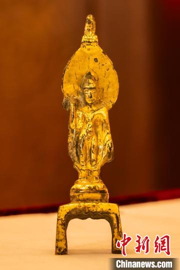 中國駐澳大利亞(ya) 大使館舉(ju) 行儀(yi) 式,接收澳方向我國返還共4件流失文物藝術品與(yu) 1件古生物化石。圖為(wei) 隋晚期至唐銅鎏金佛立像。 國家文物局供圖