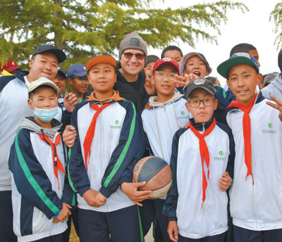 2023年5月,中國外文局語言顧問拉斐爾(中)在西藏拉薩與(yu) 當地學生合影留念。