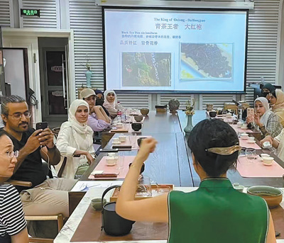 2023年7月,沙特中文學習(xi) 者那丹(左三)在北京語言大學體(ti) 驗中國茶文化。