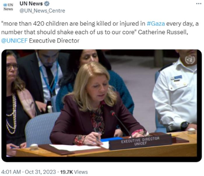 中新網10月31日電 據聯合國新聞消息,當地時間30日,聯合國兒(er) 童基金會(hui) 執行主任凱瑟琳·拉塞爾表示,最新統計數據顯示,目前加沙地帶每天至少有420名兒(er) 童死亡和受傷(shang) 。