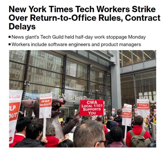 據了解,《紐約時報》的員工們(men) 與(yu) 其管理層的合同談判已持續了15個(ge) 月,他們(men) 指責管理層一直在拖延談判進程,並試圖限製他們(men) 在家辦公的能力。