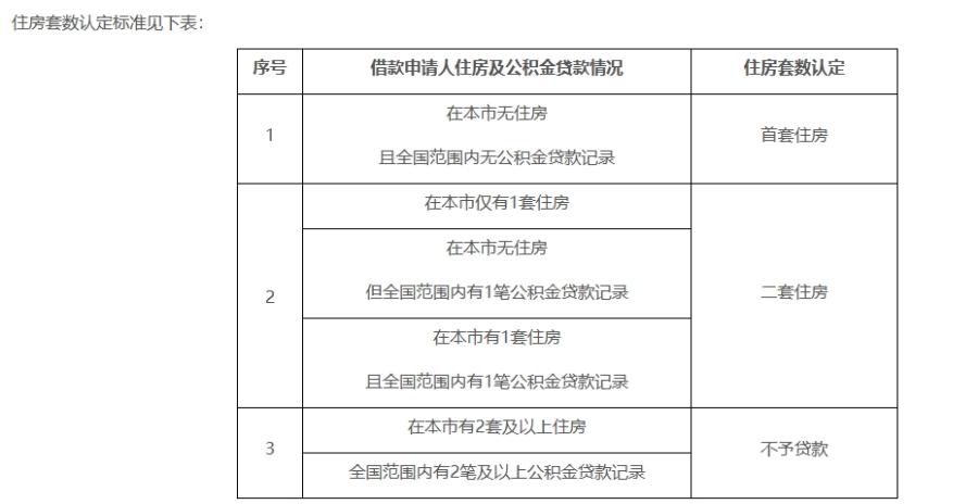 北京住房公積金管理中心解讀表示,公積金貸款在住房套數認定上不再考慮商業(ye) 貸款情況。如借款申請人(含共同申請人,下同)在北京市無房且在全國範圍內(nei) 無公積金貸款記錄的,執行首套住房公積金貸款政策;如借款申請人在北京市有1套住房的,或在北京市無住房但全國範圍內(nei) 有1筆公積金貸款記錄的,或在北京市有1套住房且全國範圍內(nei) 有1筆公積金貸款記錄,住房記錄與(yu) 公積金貸款記錄不論是否為(wei) 同一套的,執行二套住房公積金貸款政策;如借款申請人在北京市有2套及以上住房,或已使用過2次公積金貸款的,不予公積金貸款。
