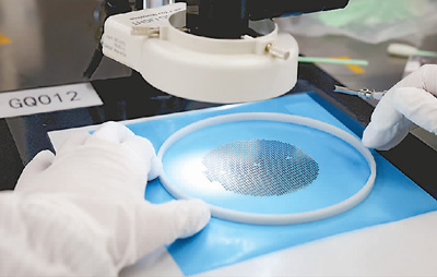 福建省福州高新技術產(chan) 業(ye) 開發區一芯片生產(chan) 車間,工作人員在檢測芯片產(chan) 品。