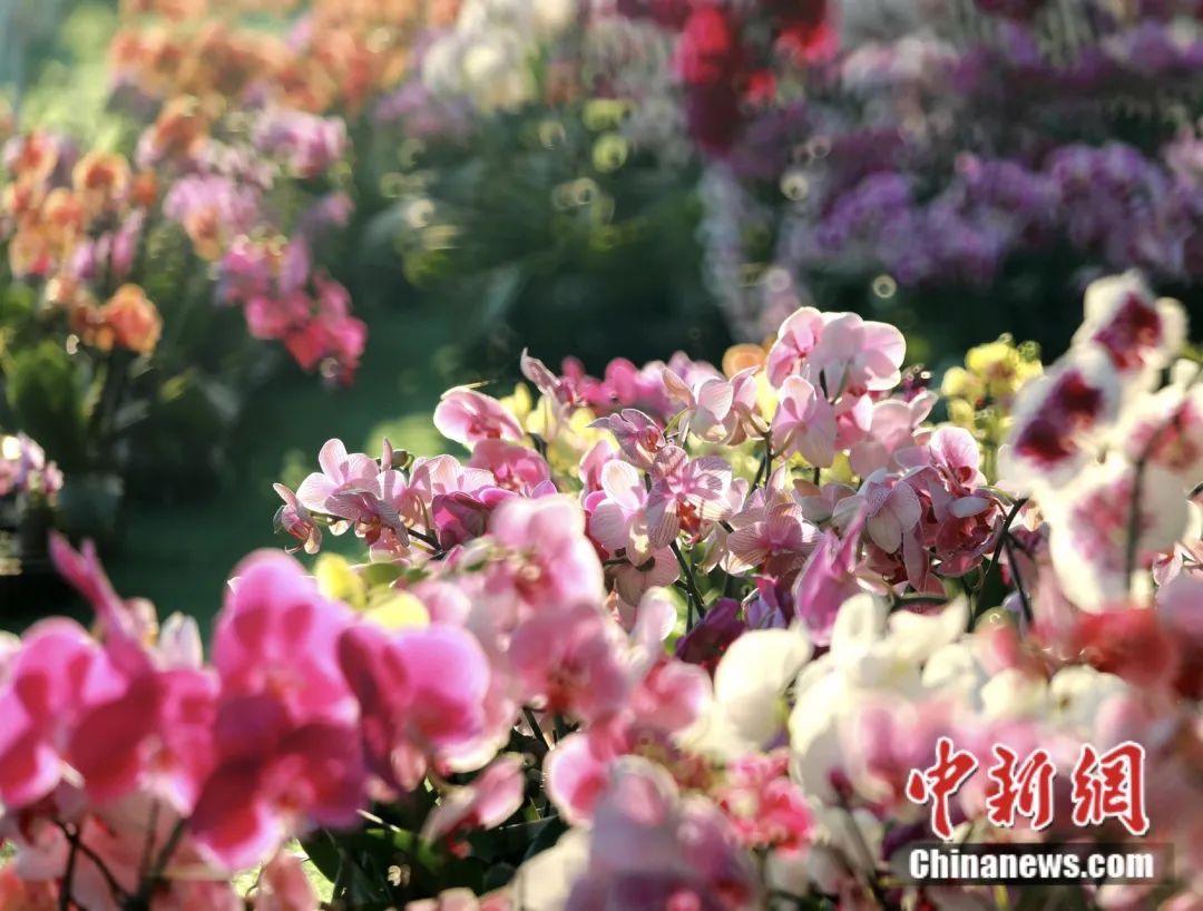 32萬(wan) 平方米的溫室大棚內(nei) ,不同品種的蘭(lan) 花競相開放,形成一片蔚為(wei) 壯觀的蘭(lan) 花海洋。