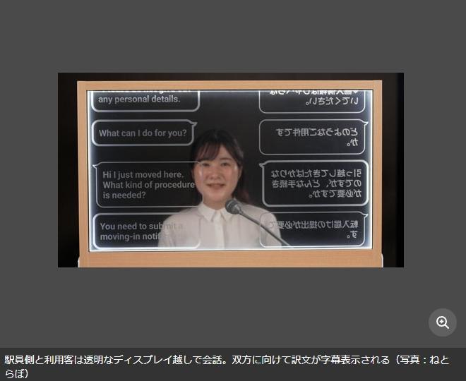 自今年7月10日起,該係統在西武新宿站進行了試行測試。在試行期間,訪日外國遊客和車站工作人員可以通過該顯示屏一邊看著對方的麵部表情一邊流暢地交談。該顯示屏還能根據外國人遊客提出的問題給予更詳細的解釋。(完)