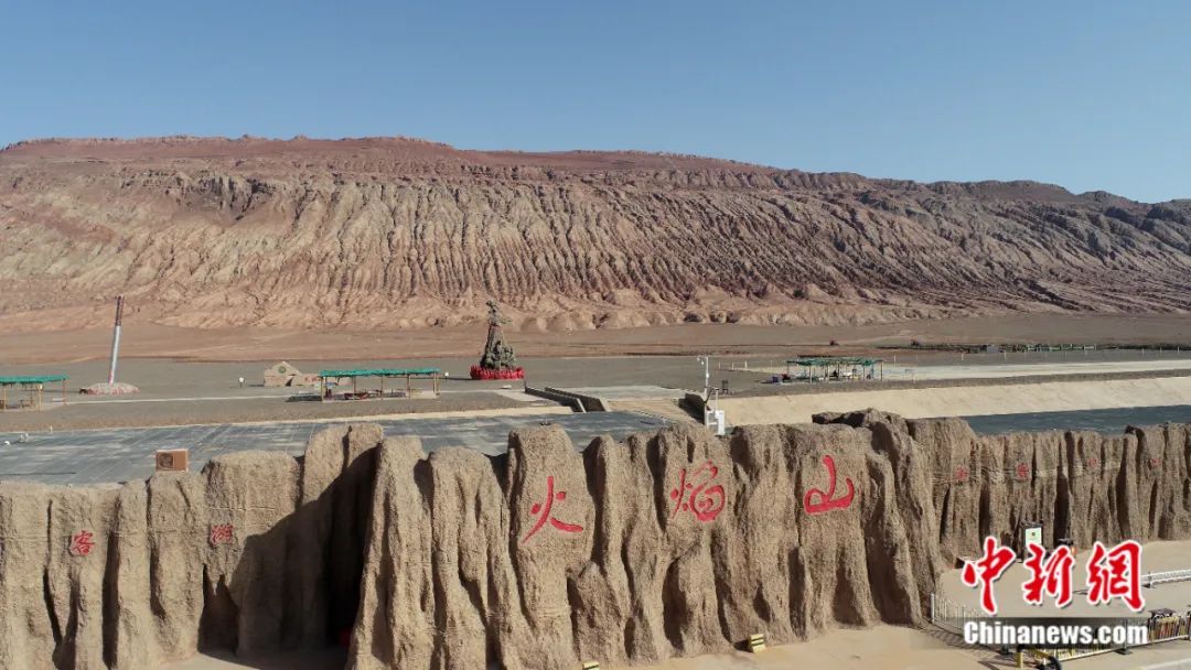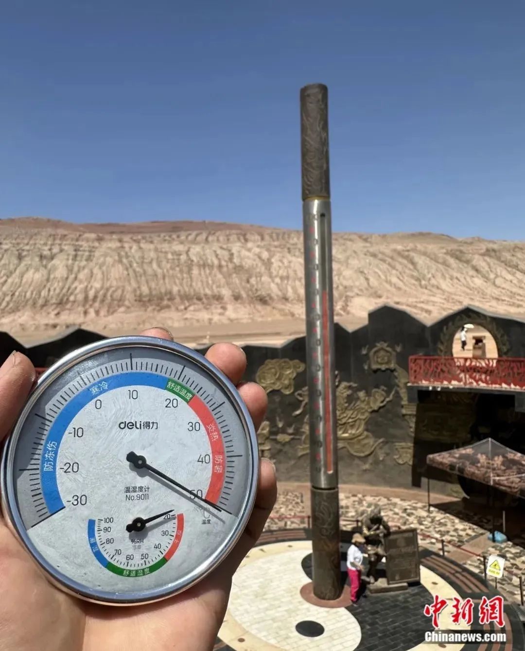 火焰山景區內(nei) 金箍棒溫度計溫度超50度。木塔力甫 攝