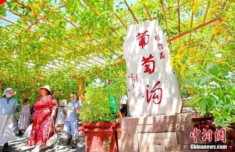 葡萄溝內(nei) 流水潺潺、綠樹成蔭