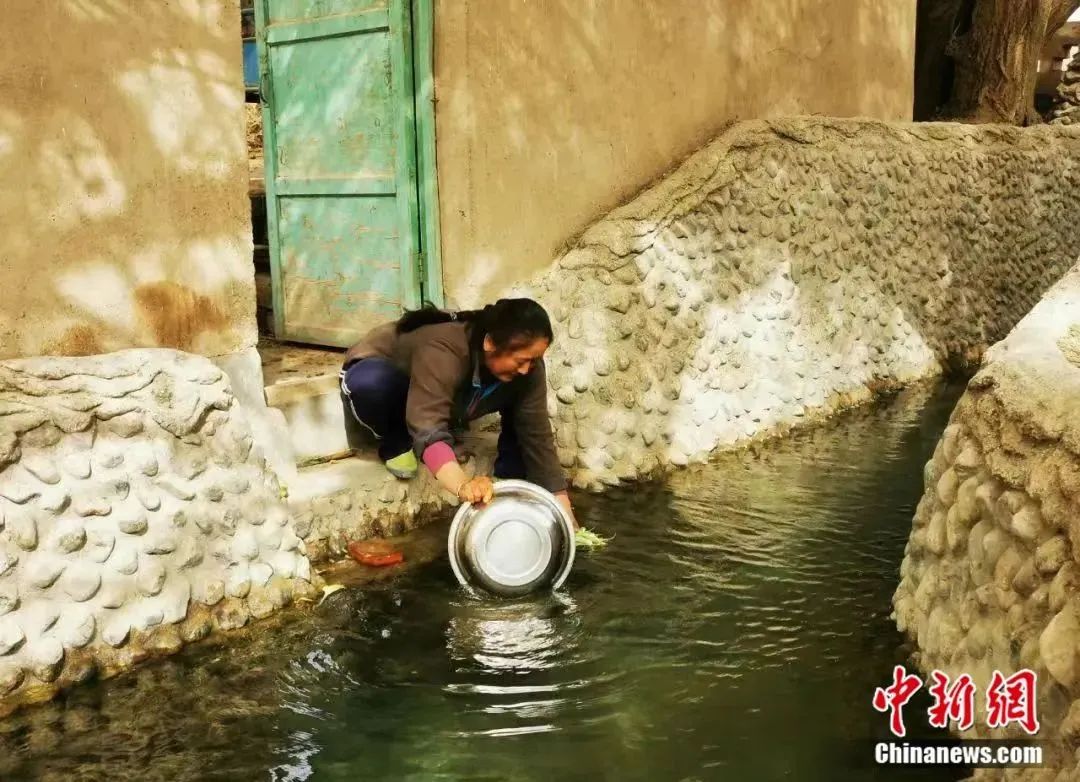 居民在坎兒(er) 井明渠洗菜。圖片來自吐魯番零距離