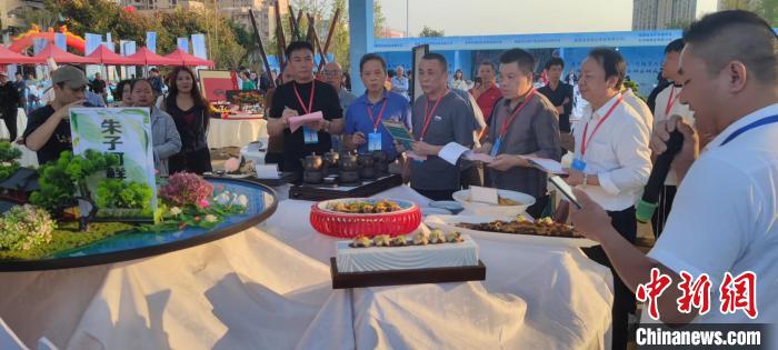 評委們(men) 在認真聽取菜品製作人講述菜品創意和文化內(nei) 涵。 郭斌 攝