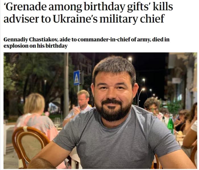 據報道,當天,烏(wu) 克蘭(lan) 武裝部隊總司令瓦列裏·紮盧日內(nei) 在社交媒體(ti) Telegram上發文稱,“很不幸地,我的助手兼好友根納季·查斯季亞(ya) 科夫少校(Gennadiy Chastyakov)今天在他的生日當天身亡。”