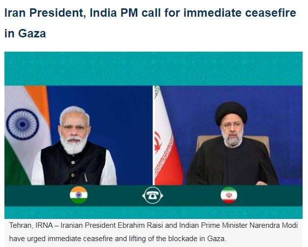 中新網11月7日電 據伊朗伊斯蘭(lan) 共和國通訊社報道,當地時間6日,在與(yu) 印度總理莫迪的電話交談中,伊朗總統易卜拉欣·萊希表示,伊朗支持任何旨在立即停火、解除封鎖並向加沙人民提供救濟的全球聯合努力。