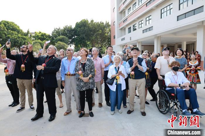 11月5日,美中航空遺產(chan) 基金會(hui) 主席傑弗裏·格林和飛虎隊老兵哈裏·莫耶、梅爾文·麥克馬倫(lun) 攜飛虎隊後代,走進“飛虎隊友誼學校”——廣西柳州市壺西實驗中學。