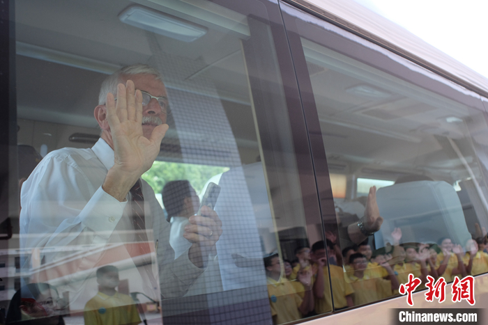 圖為(wei) 臨(lin) 別時,代表團成員與(yu) 學生揮手告別。 中新社記者 劉俊聰 攝