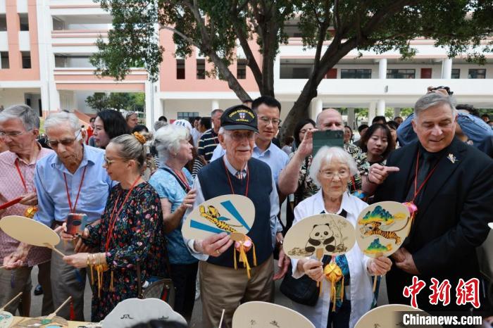 圖為(wei) 飛虎隊後代與(yu) 學生合影留念。 中新社記者 林馨 攝