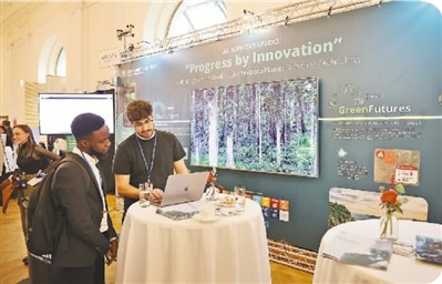 圖為(wei) 奧地利環保網絡公司的展台介紹了其在非洲實施的提高碳市場透明度、提升高質量碳信用額的解決(jue) 方案。