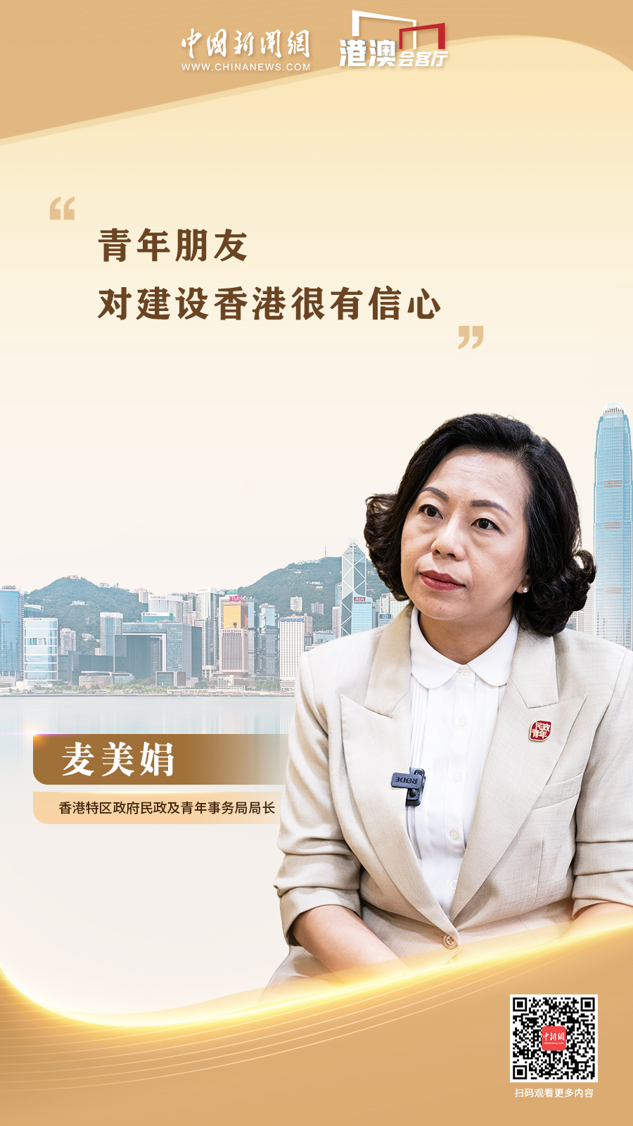 香港特區政府民政及青年事務局局長麥美娟近日接受中國新聞網“港澳會(hui) 客廳”欄目專(zhuan) 訪時表示,青年朋友對建設香港很有信心。