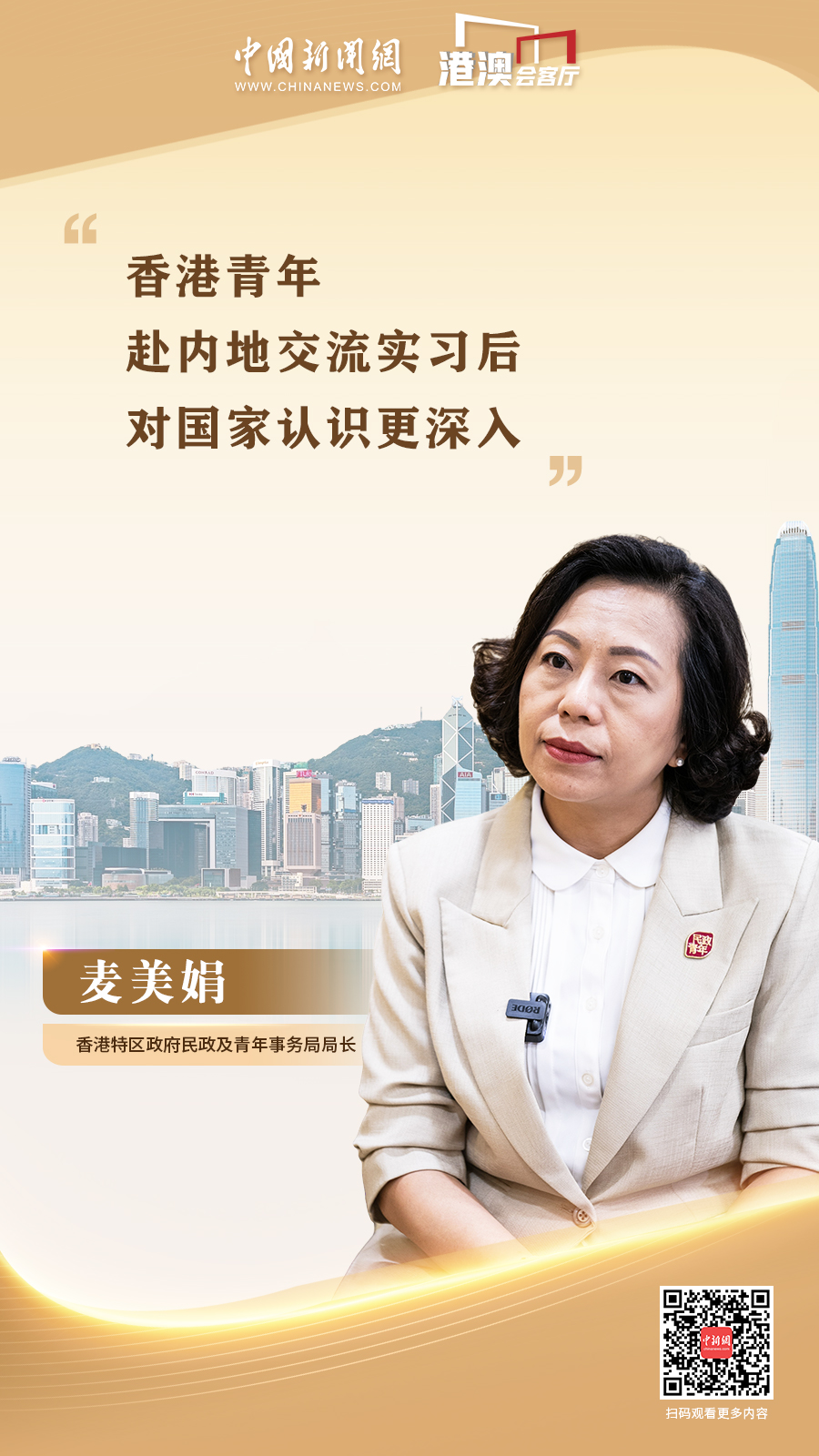 香港特區政府民政及青年事務局局長麥美娟近日接受中國新聞網“港澳會(hui) 客廳”欄目專(zhuan) 訪時表示,香港青年赴內(nei) 地交流實習(xi) 後對國家認識更深入。