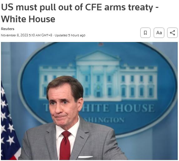 據路透社報道,當天,白宮國家安全委員會(hui) 發言人柯比稱,美國無法繼續留在這一冷戰後的重要條約中。“我不知道我們(men) 還有什麽(me) 合理的理由繼續留在這項條約中。”
