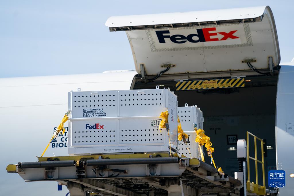 當天上午,華盛頓史密森學會(hui) 國家動物園工作人員將三隻裝有大熊貓的特製“旅行包廂”、220磅(約合100公斤)竹子、飲用水及相關(guan) 物資運上卡車。隨後,載有“美香”“添添”和“小奇跡”的車隊駛離動物園,前往華盛頓杜勒斯國際機場。
