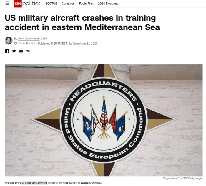 中新網11月12日電 據美國有線電視新聞網(CNN)報道,美國歐洲司令部當地時間11日表示,一架美國軍(jun) 用飛機在地中海東(dong) 部墜毀。